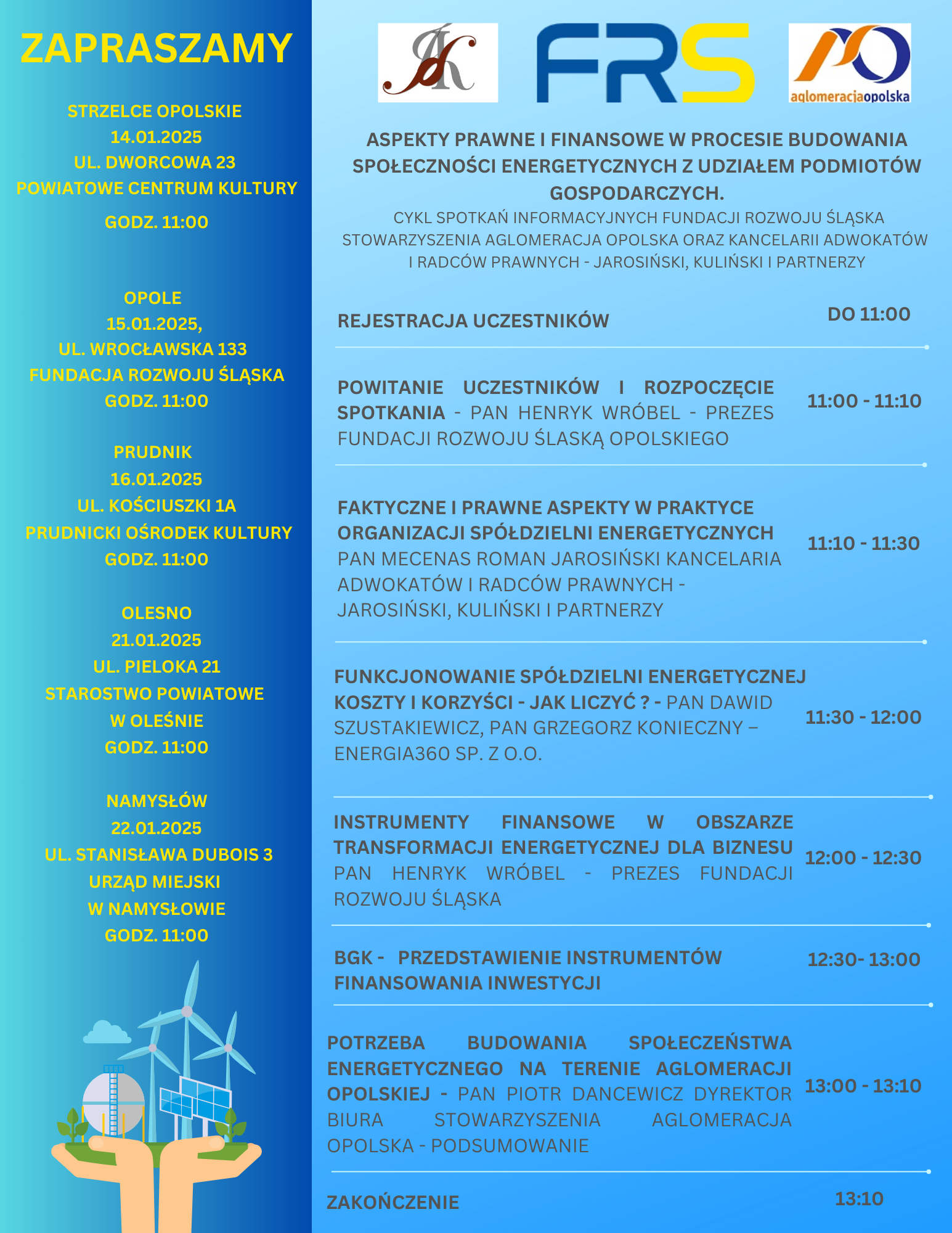 Cykl spotkań: Aspekty prawne i finansowe w procesie budowania społeczności energetycznych z udziałem podmiotów gospodarczych