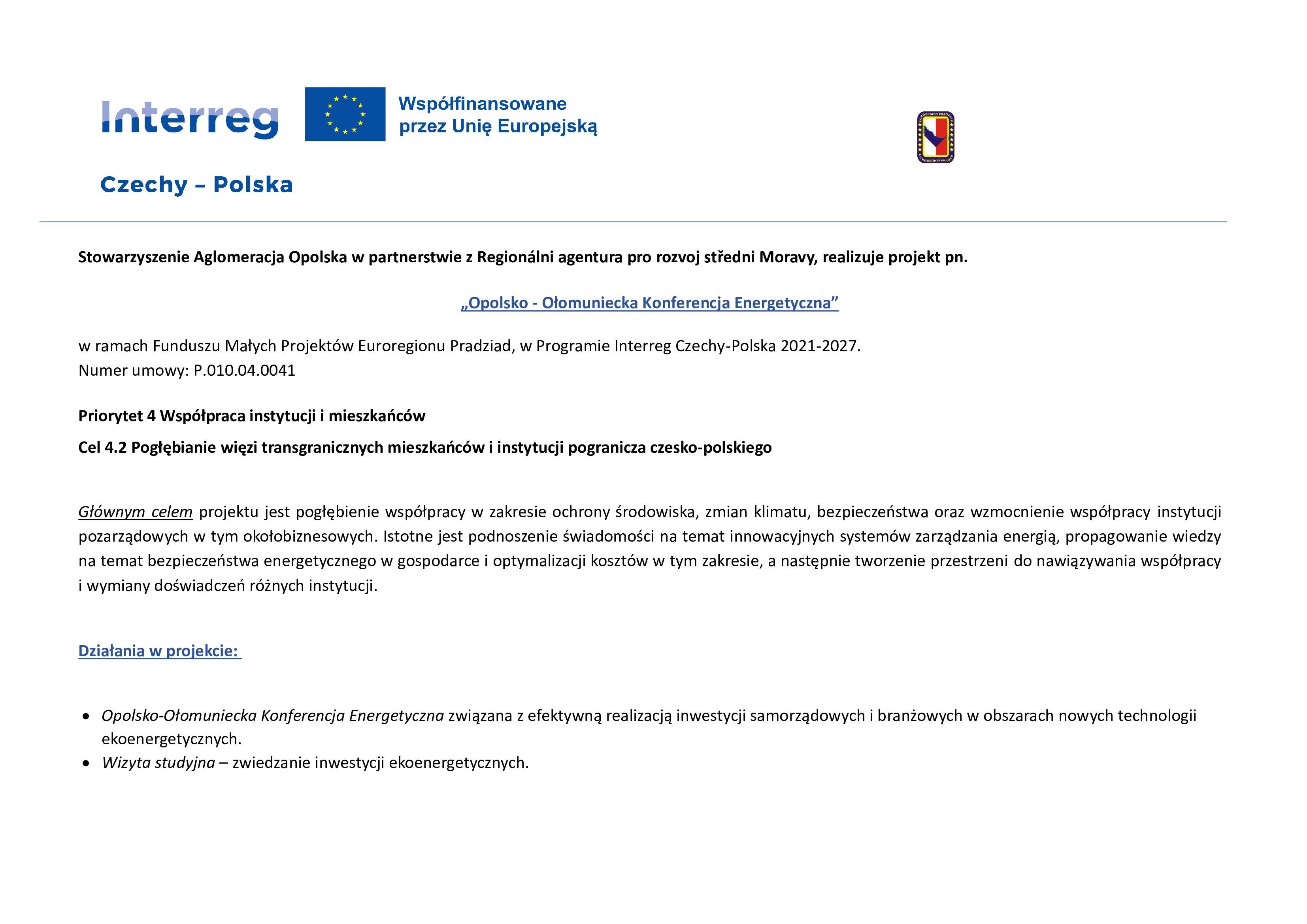 Strona główna Aktualności Opolsko-Ołomuniecka Konferencja Energetyczna Opolsko-Ołomuniecka Konferencja Energetyczna 13.09.2024 Pozostałe Pozostałe Zobacz także Zobacz wszystkie IV seans energetyczny Świąteczne Walne Zebranie Członków SAO Zapraszamy na kolejny SEANS ENERGETYCZNY Konkurs plastyczny dla klas IV-VI "Eko świat za 50 lat" Umowa o dofinansowanie sprzętu do działań ratowniczych podpisana