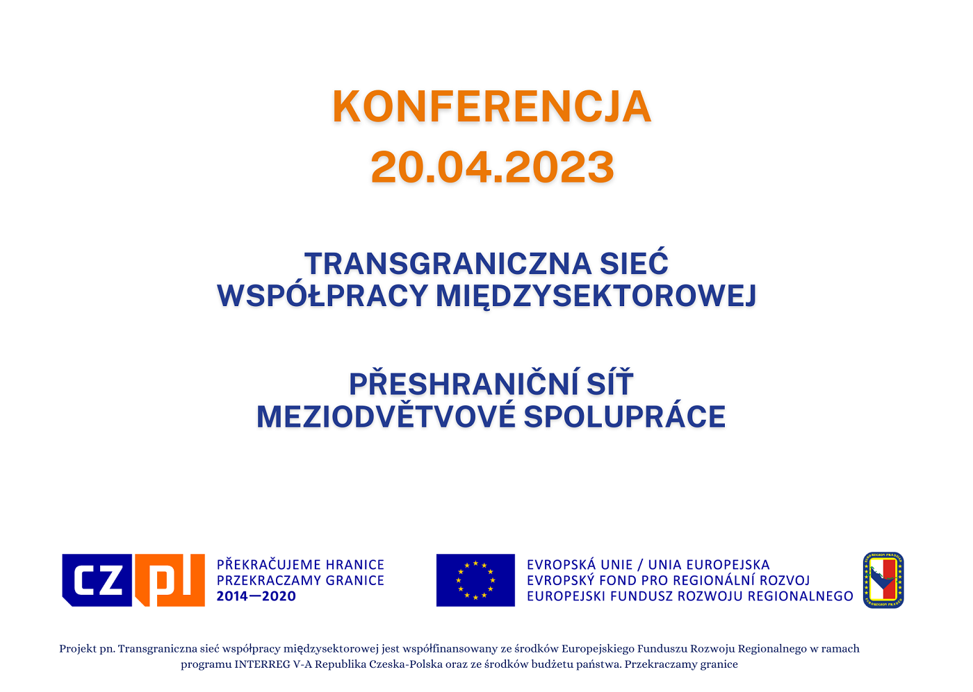 Konferencja zrealizowana została w ramach projektu Transgraniczna sieć współpracy międzysektorowej, współfinansowanego ze środków Europejskiego Funduszu Rozwoju Regionalnego w ramach programu INTERREG V-A Republika Czeska-Polska oraz ze środków budżetu Państwa. Przekraczamy granice.