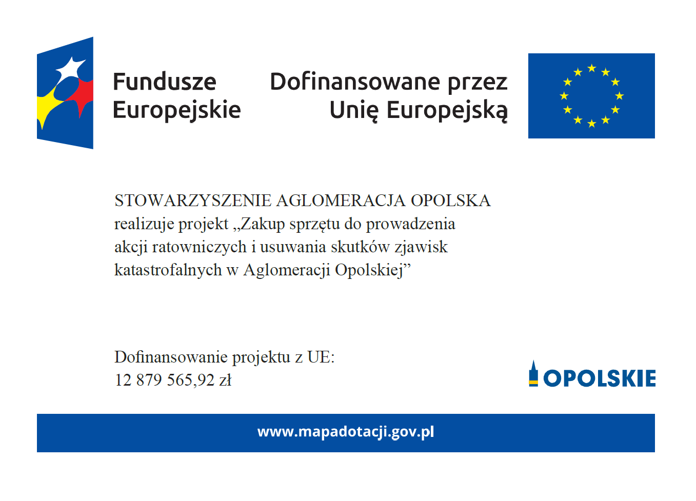 Tytuł projektu: Zakup sprzętu do prowadzenia akcji ratowniczych i usuwania skutków zjawisk katastrofalnych w Aglomeracji Opolskiej